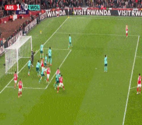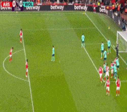 第70分钟,萨卡角球击中远门柱后,弹在狼队门将约翰斯通后脑勺造成乌龙,阿森纳1-0领先狼队。
